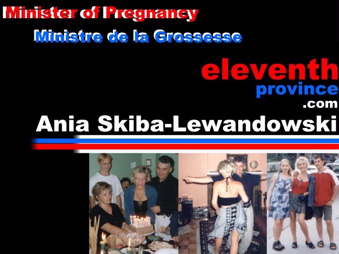 ![]() ![]() Well, this is what she wanted and I'm not one to hold back people's deepest desires. So, I'd like to welcome Ania as eleventhprovince.com's official Minister for Pregnancy. Being halfway through her first pregnancy, Ania seems adequately experienced to deal with all the requirements of her posting. Her portfolio is simply to 'be pregnant and moan incessantly about having been pregnant every day afterwards'. I know I can trust you, Ania.