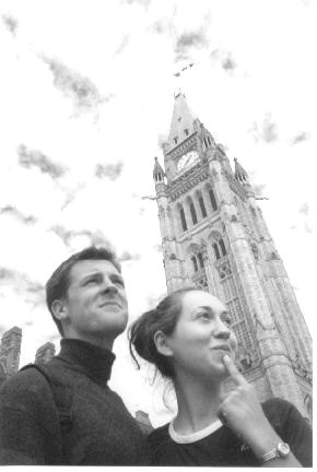 Marta & Benedict in front of the Parliament Buildings in Ottawa, Canada.