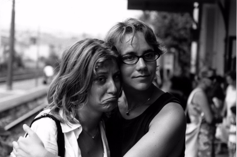 Giovanna & Eleanor say goodbye at San Bartolomeo train station, Italy.